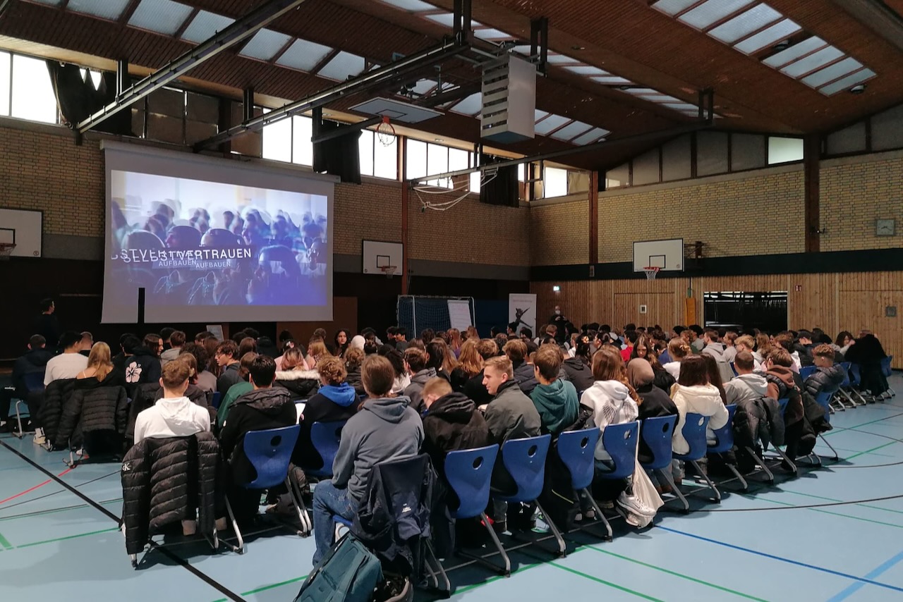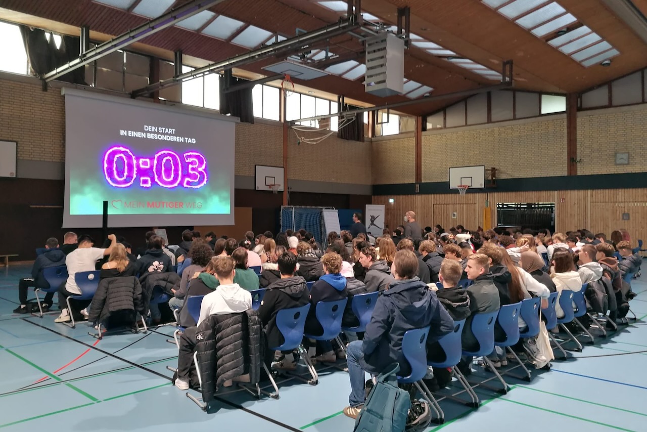 Die Mutmacherinnen und Mutmacher zeigten unseren Schüler*innen eindrücklich, dass Berufsorientierung weder langweilig noch einseitig sein muss. Durch eine abwechslungsreiche Mischung aus Vorträgen, gemeinsamen „Energizern“ und individueller Arbeit mit dem Seminar-Workbook wurde eine wertschätzende Lernatmosphäre geschaffen. Die Schülerinnen und Schüler erarbeiteten in der Präsenzveranstaltung von MEIN MUTIGER WEG fünf Schritte für ihren eigenen mutigen Weg. Dabei lernten sie ihre Stärken und Entscheidungskriterien für die Berufswahl kennen und wie sie ihr Selbstvertrauen stärken und mit Ängsten umgehen können. Elemente des 5-Schritte-Erfolgsplans helfen den Schülerinnen und Schülern dabei, ihre persönlichen Prioritäten zu definieren. MUTIGER WEG, sagt: „Ich glaube, wir können die Schülerinnen und Schüler gut erreichen, weil wir aus eigener Erfahrung wissen, wie schwer es heutzutage ist, einen Beruf zu finden, der wirklich zu den eigenen Stärken passt.“